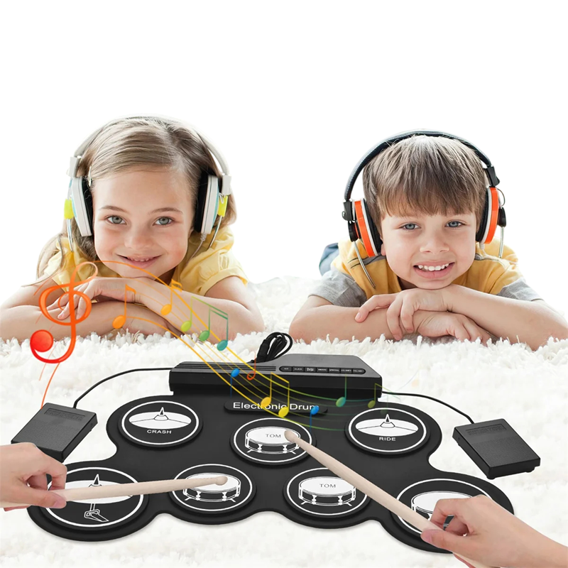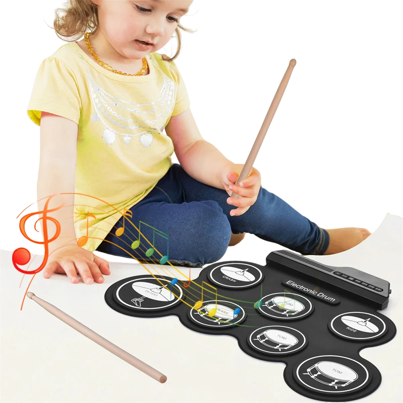 Das faltbare elektronische Schlagzeug-Set ist die ideale Lösung für alle, die das Schlagzeugspiel üben möchten, ohne viel Platz zu benötigen. Tragbares Design, USB-Stromversorgung, komplettes Zubehör und realistisches Spielerlebnis machen es zu einer hervorragenden Wahl für Anfänger und fortgeschrittene Musiker. Dank der rollbaren Konstruktion können Sie es leicht verstauen oder transportieren, sodass Sie überall und jederzeit spielen können. Dieses Set ist ein großartiges Geschenk für Musikbegeisterte, die nach einer praktischen und modernen Lösung für ihr Schlagzeugtraining und ihre Unterhaltung suchen.