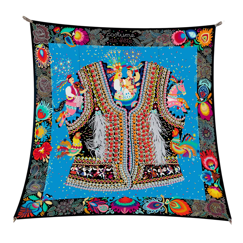 Dieses quadratische Tuch ist eine Hommage an die reiche Volkskultur und traditionelle Muster, die niemals ihren Charme verlieren. Das von folkloristischen Motiven inspirierte Design bringt Harmonie in Farben und zarte Eleganz. Das Motiv, das die Volksbräuche feiert, verleiht dem Outfit einen individuellen Charakter und zeitlosen Charme. Das Tuch ist als multifunktionales Modeaccessoire konzipiert, das sich leicht verschiedenen Stilen anpassen lässt. Sie können es als Tuch für Kopf, Hals und Körper verwenden und so immer eine originelle Kombination schaffen.