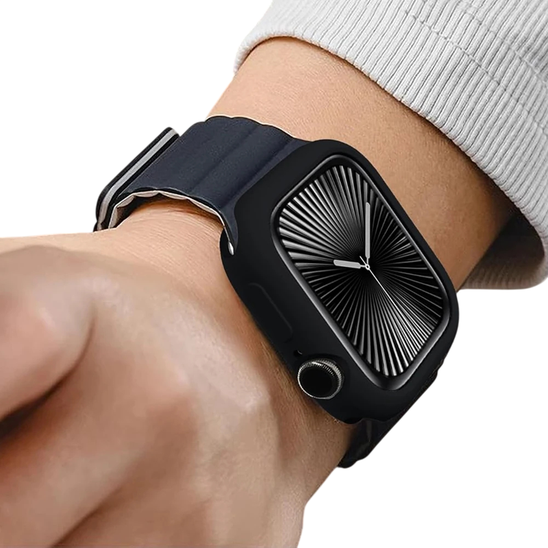 Dieses Schutzelement ist für die Apple Watch Series 10 und 11 in der Größe 46 mm konzipiert. Dank der präzisen Form passt das Etui eng am Gehäuse der Uhr an und sorgt für einen stabilen Halt während des täglichen Gebrauchs. Das Etui besteht aus weichem und flexiblem Silikon, das angenehm in der Hand liegt und gleichzeitig hilft, Stöße zu absorbieren. Die Konstruktion des Etuis bietet zuverlässigen Schutz gegen Stöße, Stürze und Kratzer, wodurch die Uhr in gutem Zustand bleibt. Die präzise Ausführung gewährleistet zudem perfekte Kompatibilität mit der Apple Watch 46 mm und erhält die volle Funktionalität aller Tasten und Anschlüsse.