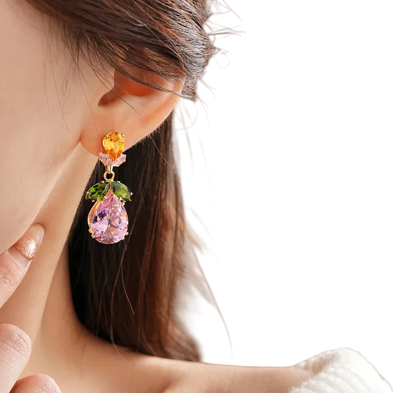Florale farbige Schmuckset Halskette 44,5 cm Ohrringe 3,9 cm Zirkon Hochzeits Abend Schmuck aus Kupfer für Frauen Ball Verlobung