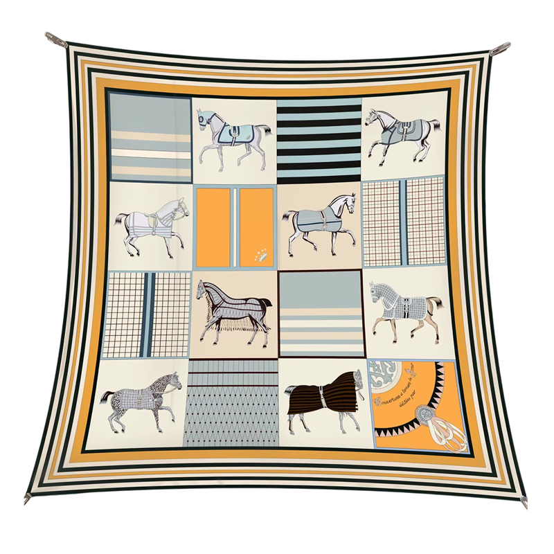 Dieses quadratische Tuch besticht auf den ersten Blick durch sein durchdachtes geometrisches Design. Das Muster aus regelmäßigen Quadraten schafft eine harmonische Komposition, die modern und gleichzeitig zeitlos wirkt. Das minimalistische Motiv verleiht dem Outfit Klarheit und stilistische Ausgewogenheit. Das Tuch ist ein modischer Trend-Accessoire, das Sie leicht mit eleganter oder lässiger Kleidung kombinieren können. Dank der universellen Form können Sie es als Tuch für Kopf, Hals und Körper tragen, je nach aktueller Gelegenheit.