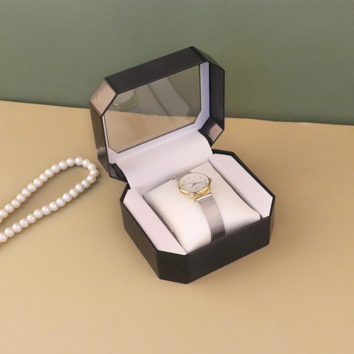Uhrenbox geeignet zur Aufbewahrung oder zum Verschenken. Acryl-Geschenkbox mit Deckel und herausnehmbarem Innenkissen. Vollständige Beschreibung