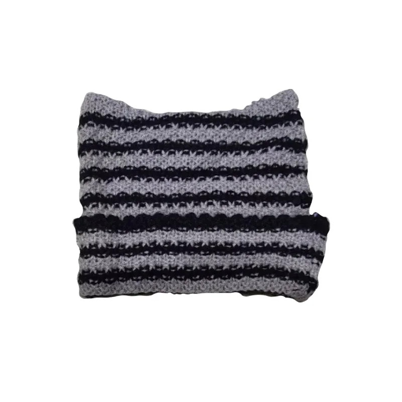 Gestreifte Strickmütze mit Katzenohren 56–59 cm Harajuku Little Devil Stylische Unisex Wintermütze Baumwolle Acryl Streetwear