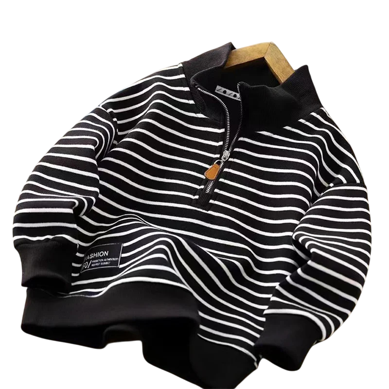 Gestreifter Kinderpullover mit Rollkragen und halbem Reißverschluss Baumwolle und Polyester Sportpullover für Jungen und Mädchen Herbstlicher lockerer Schnitt Verschiedene Farben
