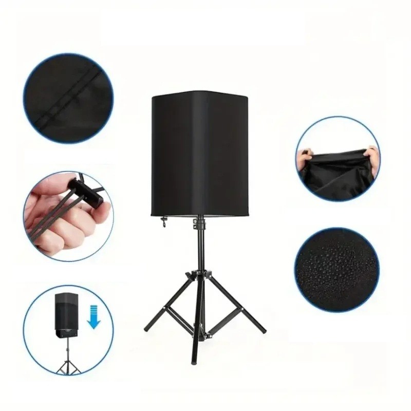 Die Installation ist schnell und bequem – einfach den Bezug über den Lautsprecher ziehen, den unteren Saum zusammenziehen und fertig. Das universelle Design ermöglicht die Verwendung im Innen- und Außenbereich, bei Konzerten, Veranstaltungen, Proben, in der Garage oder im Techniklager.