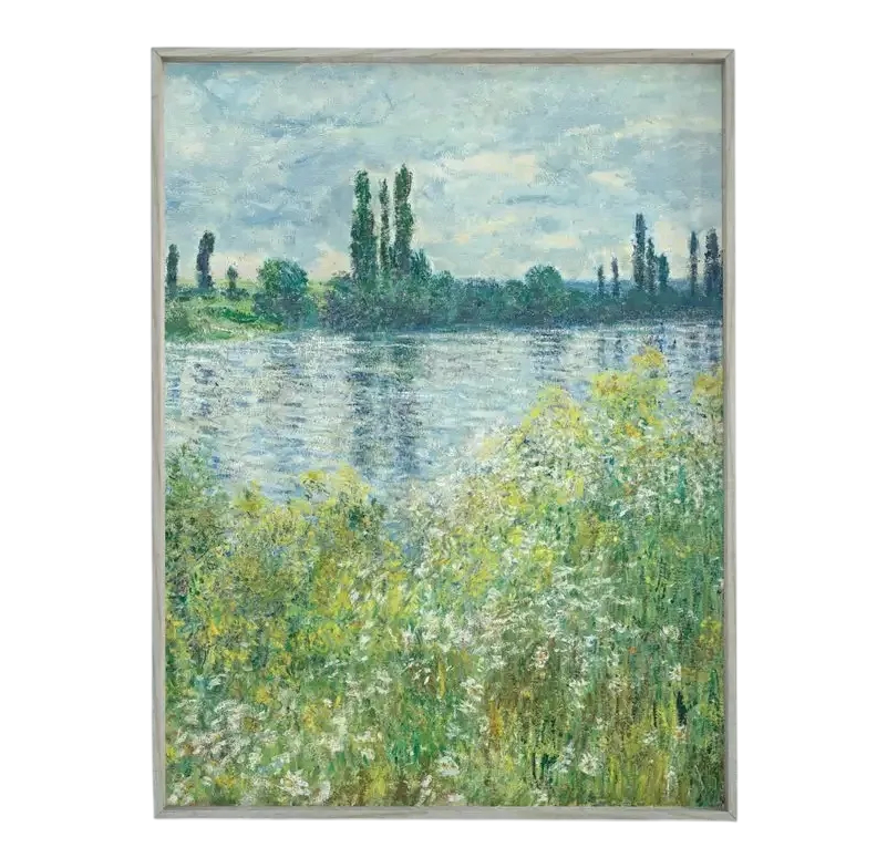 Startseite Startseite Haushalt Wohnaccessoires und Deko Bilderrahmen und Gemälde Großes Leinwandbild 50 x 70 cm Ufer der Seine bei Vétheuil Monet Inspiration Vertikale Landschaft Kunstdruck ohne Rahmen Wanddekoration