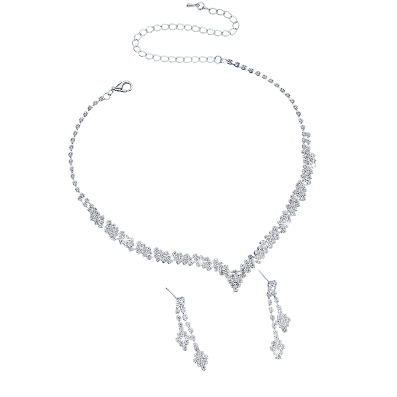 Elegantes, glitzerndes Set mit Kristallen in V-Form schmeichelt dem Dekolleté. Ideal für Hochzeiten, Bälle und Partys, auch geeignet für empfindliche Haut. Vollständige Beschreibung