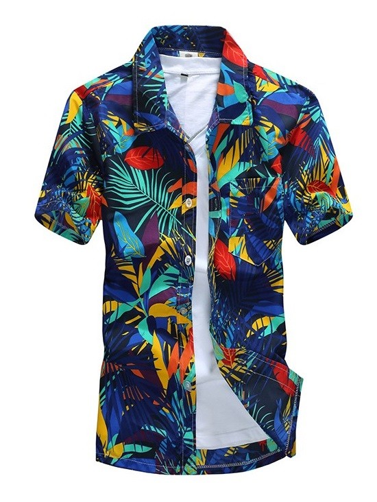 Seien Sie bereit für den Sommer mit diesem Hawaiihemd mit Palmblättern.