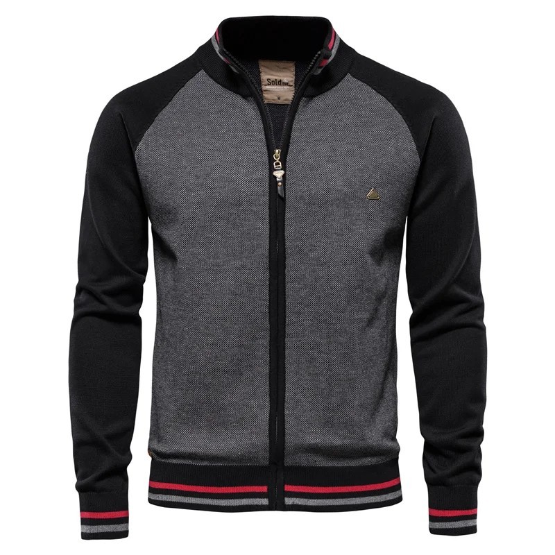 Eleganter Herren-Kardigan mit Reißverschluss aus Baumwolle und Lycra. Bequemer und elastischer Pullover geeignet für den täglichen und gesellschaftlichen Gebrauch. Vollständige Beschreibung