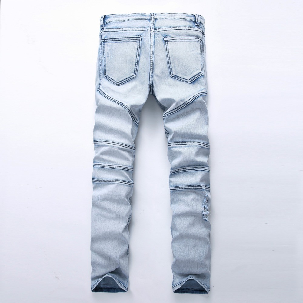 Herren stilvolle, zerrissene Jeans mit Streifen auf der Vorderseite.