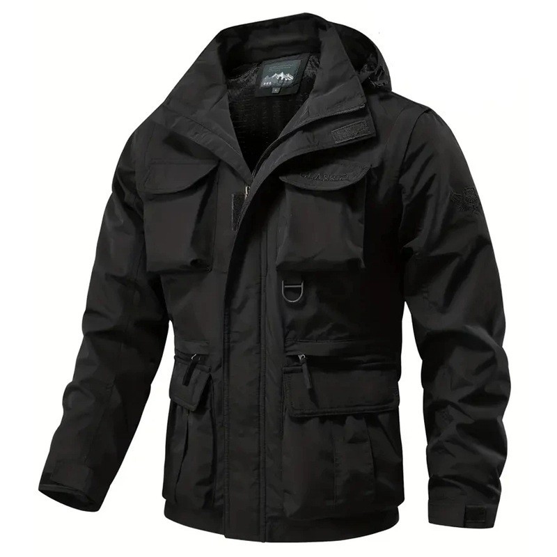 Diese praktische Herren-Outdoorjacke vereint Funktionalität, Komfort und Stil für alle Ihre Outdoor-Aktivitäten. Dank der abnehmbaren Kapuze und Ärmel können Sie sie leicht an das Wetter und Ihre Bedürfnisse anpassen. Sie ist mit mehreren praktischen Reißverschluss- und Pattentaschen ausgestattet, in denen alles Wichtige Platz findet. Sie eignet sich zum Wandern, Angeln, Camping sowie für den Alltag in der Stadt oder in der Natur. Ihr strapazierfähiges Material bietet zuverlässigen Schutz vor Wind und leichtem Regen.