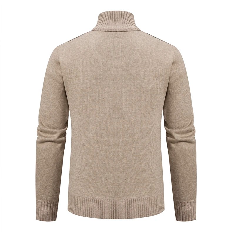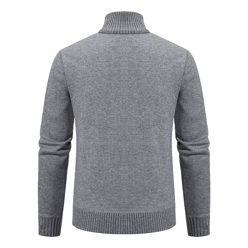 1× männlicher gestrickter Cardigan mit Reißverschluss und Rollkragen (ausgewählte Farbe und Größe)