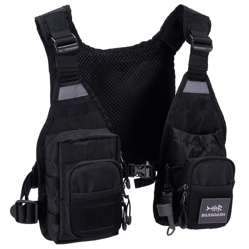 Der Rücken der Weste ist aus atmungsaktivem Netzgewebe gefertigt, das zur besseren Luftzirkulation bei Bewegungen beitragen kann. Verstellbare Schulter- und Seitengurte helfen, die Weste an verschiedene Körperformen anzupassen.