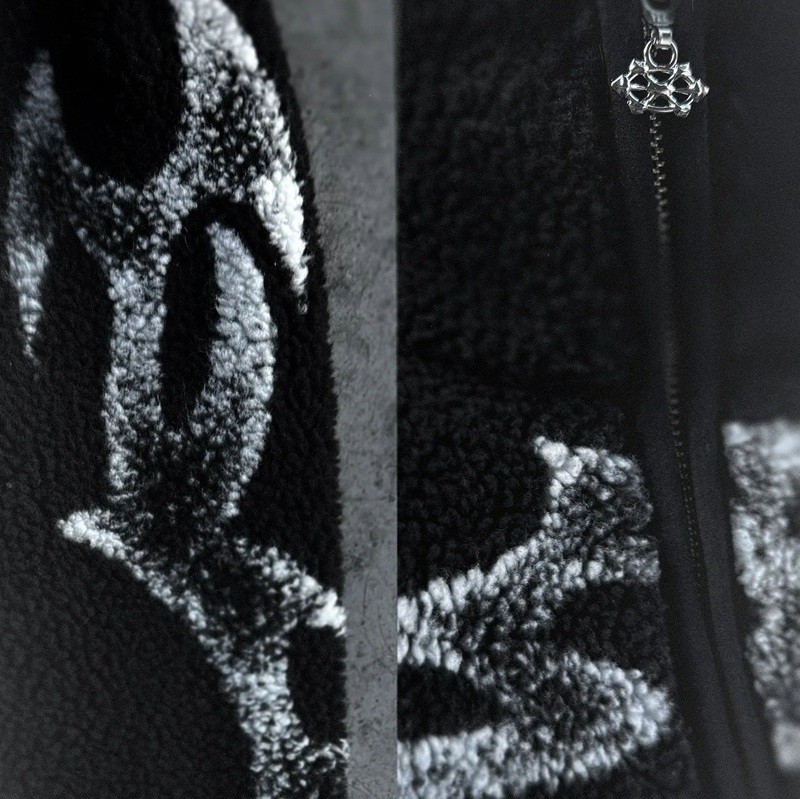 Das weiße Motiv an den Ärmeln und der Brust verleiht der Jacke einen originellen Charakter und unterscheidet sie von gewöhnlichen einfachen Wintermodellen. Der Schnitt ist so gestaltet, dass er die Bewegungsfreiheit nicht einschränkt und bequem beim Gehen, Reisen und längeren Tragen ist. Dank der Kombination aus Plüschoberfläche und Baumwolle ist die Jacke für den täglichen Gebrauch in der Stadt sowie bei Freizeitaktivitäten geeignet. Die gesamte Ausführung konzentriert sich auf Funktionalität, Wärme und ein angenehmes Tragegefühl während des gesamten Winters.