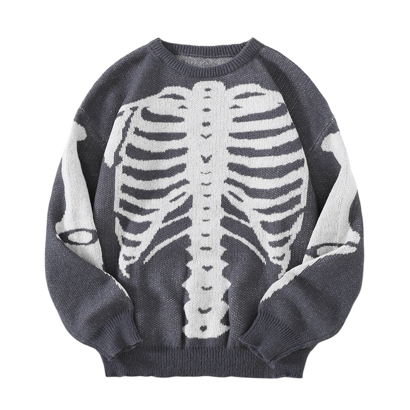 - Inhalt der Verpackung: 1× Herrenpullover mit Skelettmotiv in der gewählten Farbe und Größe