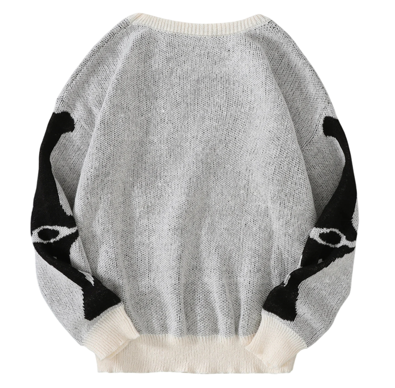 Dieser Herrenpullover mit Skelettmotiv ist ein auffälliges Stück, das modernes Design, Komfort und Originalität vereint. Dank der langen Ärmel und des runden Ausschnitts ist er praktisch für den Alltag und lässt sich leicht mit Jeans oder Hosen kombinieren. Das Skelettmotiv verleiht dem Pullover ein einzigartiges Aussehen, das nicht nur im Herbst und Winter, sondern auch bei Themenveranstaltungen wie Halloween-Partys auffällt.