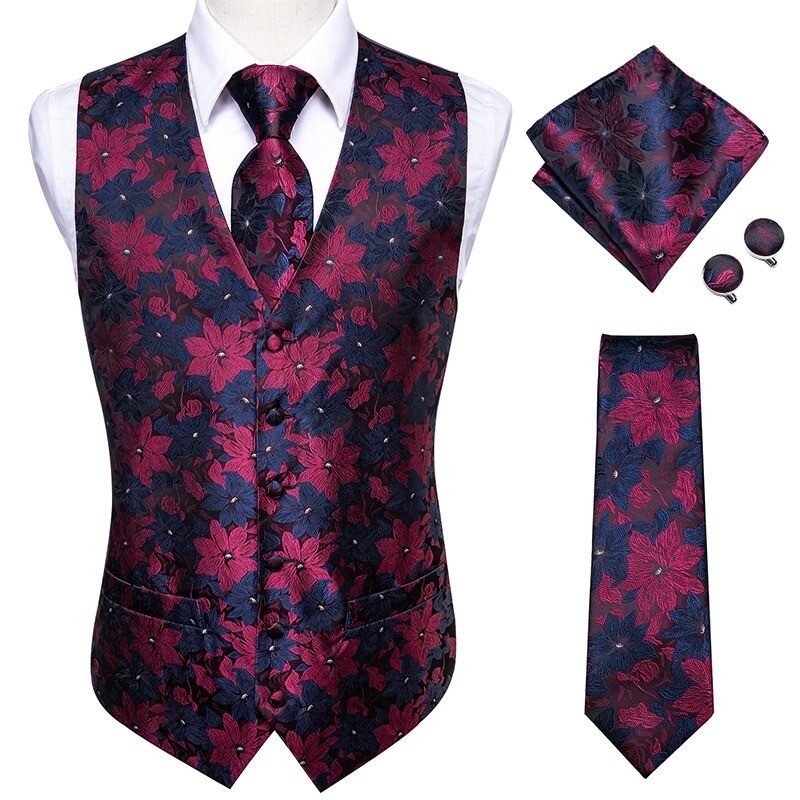 Packungsinhalt: 1x Weste, 1x Krawatte, 1x Einstecktuch, 2x Manschettenknöpfe