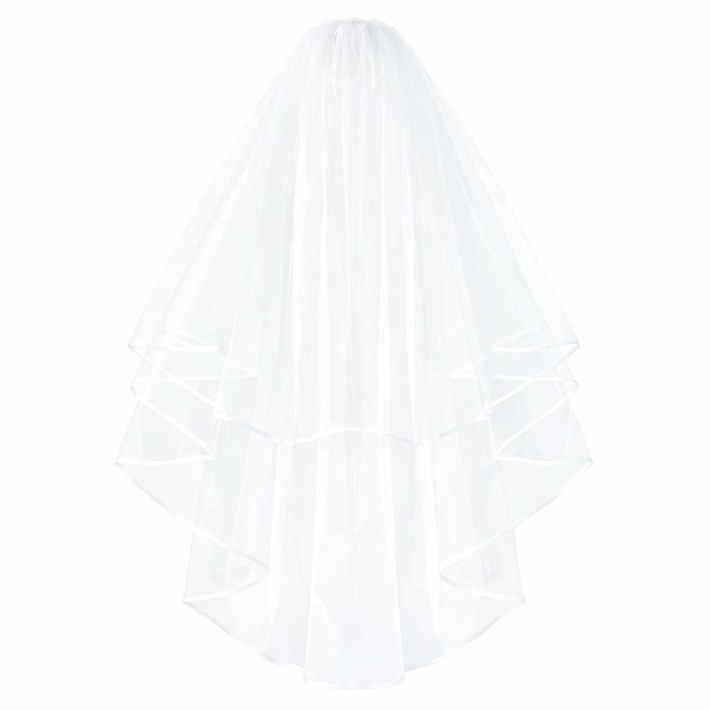 Hochzeitsvorhang 78 cm Zweilagig Tüll Mit Kamm Mit Band Besäumt Weiß Ivory Zarter Vorhang für Hochzeitskleider