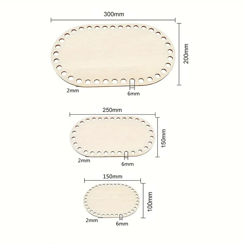Holz ovaler Boden zum Häkeln von Körben 3 Stück Verschiedene Größen 30x20 25x15 15x10 cm Dicke 2 mm Löcher 6 mm Handgefertigt