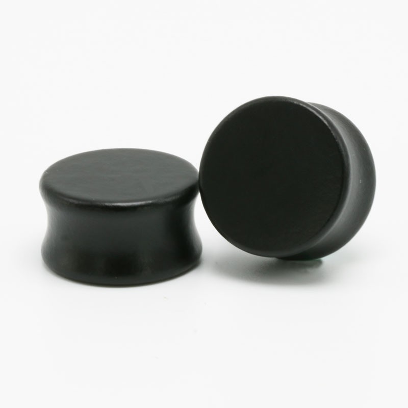 Holzstecker haben eine konkave Form – sie sind leicht nach innen geschnitten und haben an den Rändern einen erhöhten Rand.