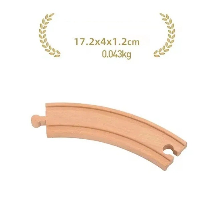Hochwertige Holzkurve zur Erweiterung der Eisenbahn. Robuste Konstruktion, präzise Form und einfache Verbindung mit anderen Teilen für ein reibungsloses Fahren. Vollständige Beschreibung