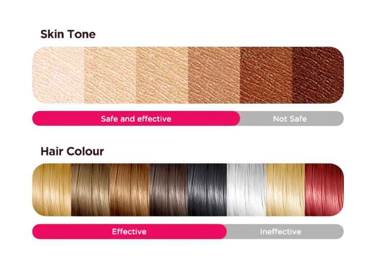 • Höchste Effektivität bei der Entfernung dunklerer Haare