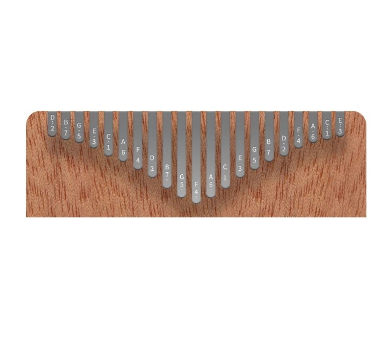 - 21 Tasten aus Metall für klaren und melodischen Klang.
