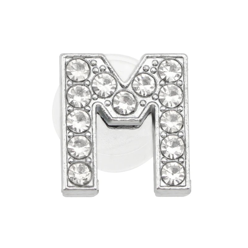 Kamínková Ozdoba na Crocsy Písmeno M 2,5–3 cm PVC Silberne Dekoration für Schuhe zur Personalisierung von Schuhen und Erstellung von Initialen