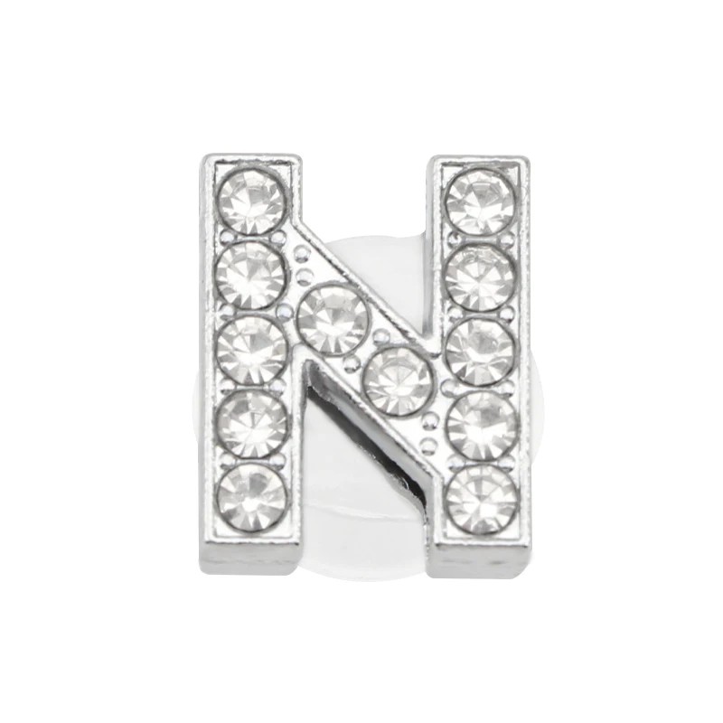 Kamínková Ozdoba na Crocsy Písmeno N 2,5–3 cm PVC Silberne Dekoration für Schuhe zur Personalisierung und Erstellung von Initialen