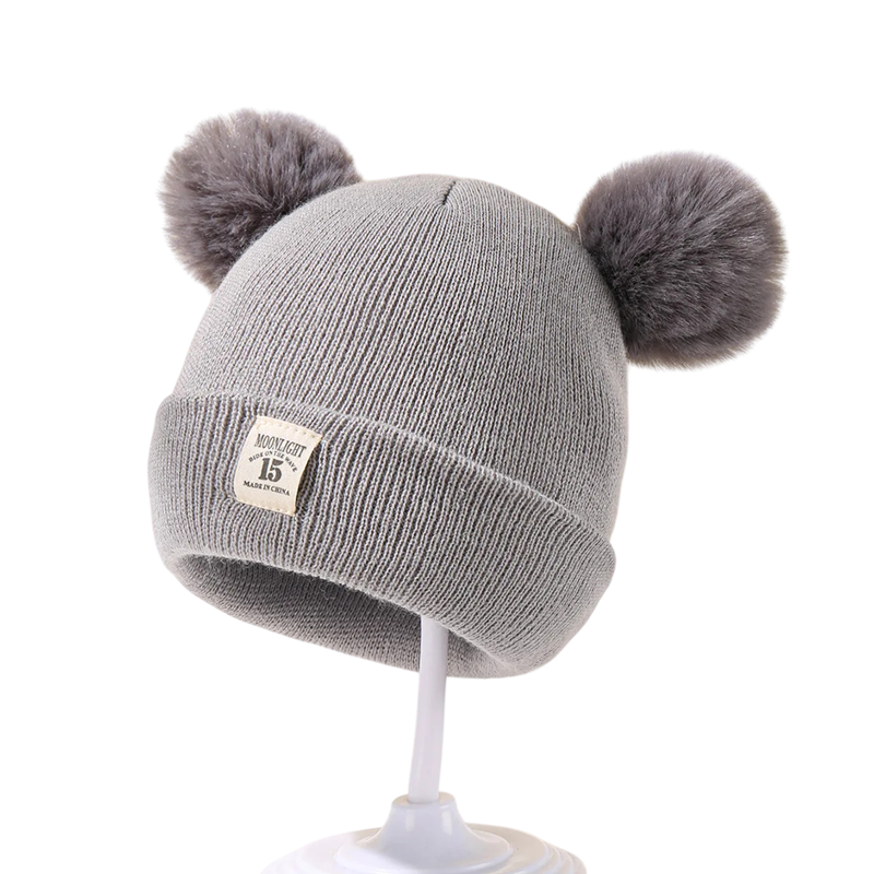 Kinder gestrickte Wintermütze 16 x 16 cm 0–3 Jahre Akryl warme Mütze mit Pompons Weiche Wintermütze
