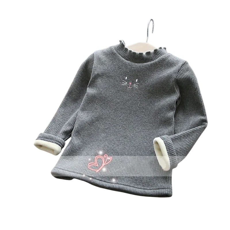 Startseite Startseite Kleidung und Accessoires Kinderkleidung Mädchenkleidung Pullover für Mädchen Kinder gestrickter Pullover mit umschlagenem Rollkragen und gesticktem Motiv Einfarbiger warmer Pullover aus Baumwolle, Acryl und Polyester Stilvolles Oberteil für Jungen und Mädchen