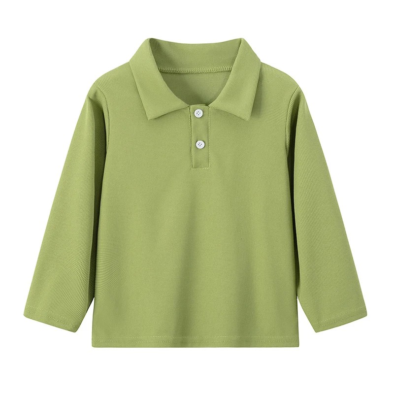 Kinder-Polohemd mit Kragen und Knöpfen Polyesterhemd mit langen Ärmeln Einfarbiges Sporthemd für Jungen und Mädchen