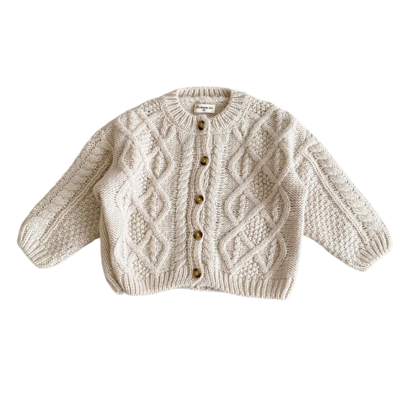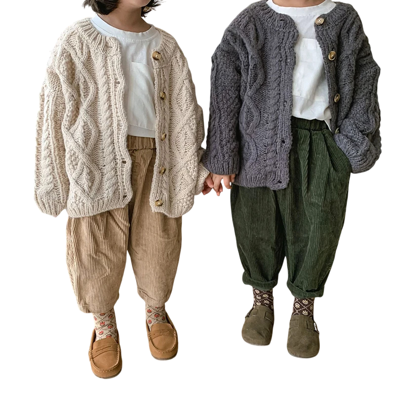 Dieser Cardigan ist die ideale Wahl für Eltern, die Stil, Komfort und Funktionalität in einem Kleidungsstück suchen. Grobe Wolltextur sorgt für perfekte Wärme auch an kalten Tagen, während atmungsaktives Strick der Haut das Atmen ermöglicht. Knopfverschluss fügt ein elegantes Detail und praktische Nutzung hinzu. Retro Design mit Hanfstruktur schafft ein zeitloses Aussehen, das niemals aus der Mode kommt. Dieser hochwertige und wärmende Pullover wird zu einem unverzichtbaren Teil der Herbst- und Wintergarderobe jedes Kindes.