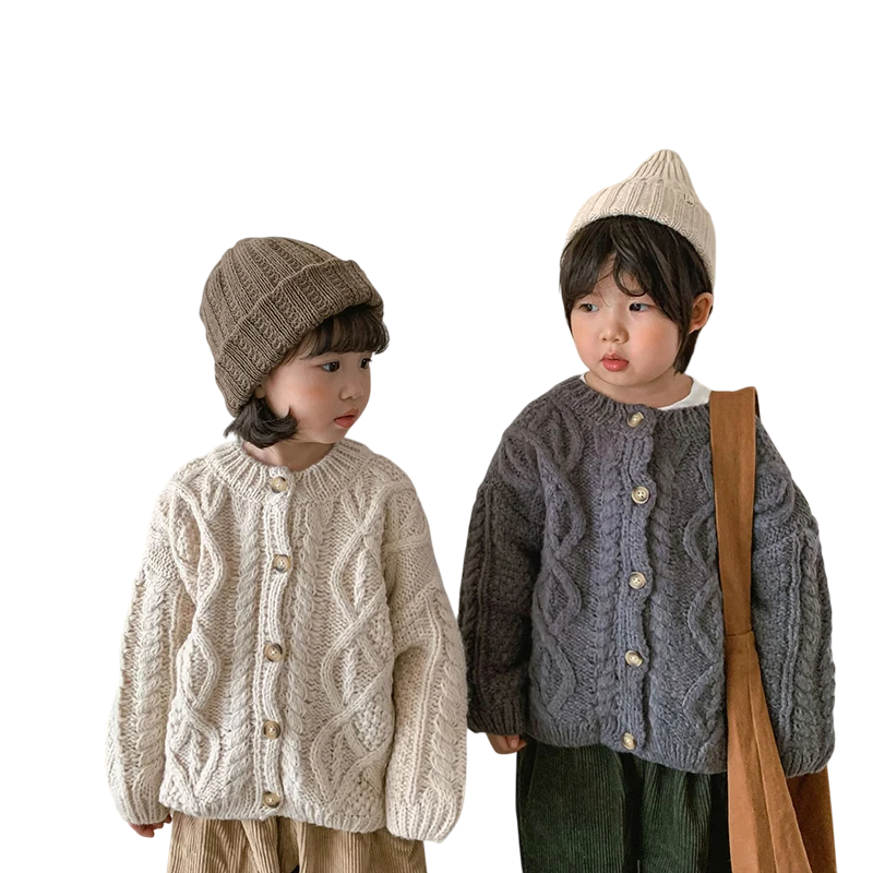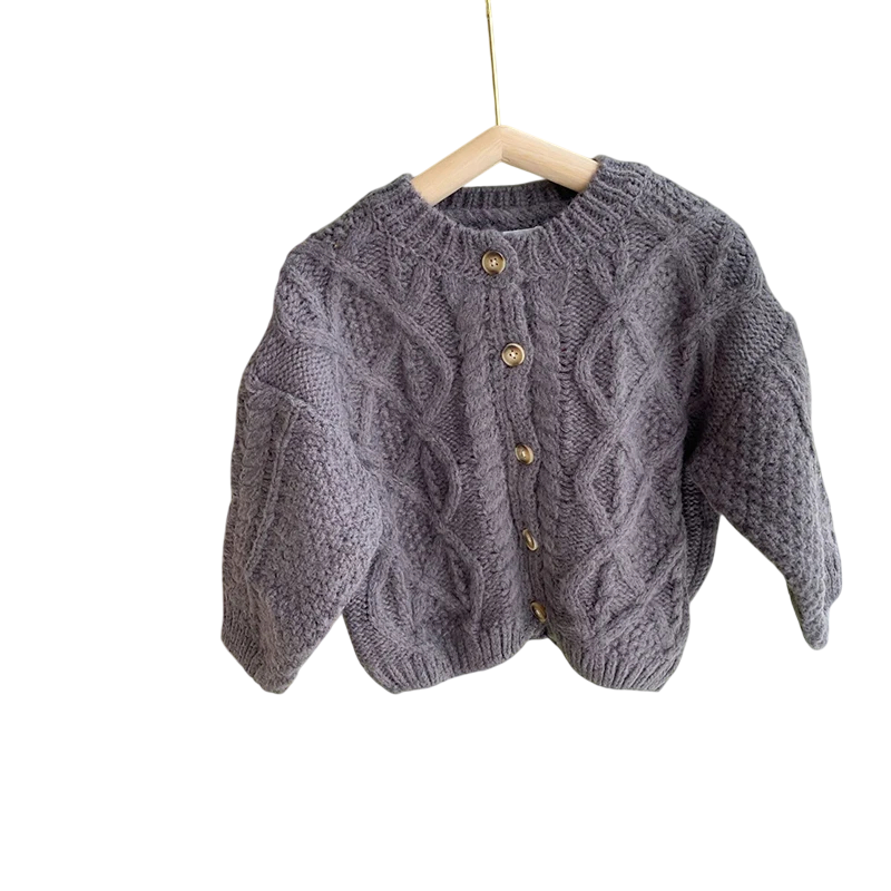 Kinder Strickcardigan 9M–8Y Grober Wollpullover mit Knöpfen Retro Hanfjacke für Jungen und Mädchen Einfarbiger Herbst- und Winterpullover Verschiedene Farben