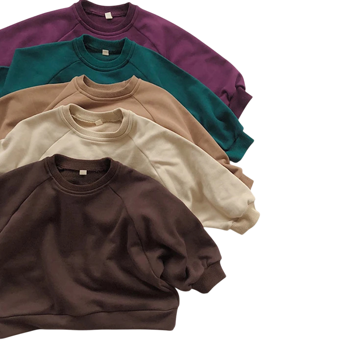 Bequemes Kinder Sweatshirt mit langen Ärmeln aus Baumwolle und Polyester. Leichter einfarbiger Oberteil mit Rundhalsausschnitt für Jungen und Mädchen, ideal für den täglichen Gebrauch. Vollständige Beschreibung