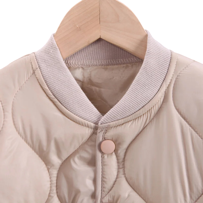 Die Jacke ist mit zwei funktionalen Taschen ausgestattet, die es den Kindern ermöglichen, Kleinigkeiten zu verstauen oder sich an kalten Tagen die Hände zu wärmen. Die strapazierfähige Polyesteroberfläche hilft, vor Wind zu schützen, während die Baumwollfüllung eine konstante Temperatur aufrechterhält und ein angenehmes Tragegefühl gewährleistet. Der Gesamtschnitt der Jacke ist bequem, schränkt die Bewegung nicht ein und ist sowohl für die Schule als auch für Outdoor-Aktivitäten geeignet. Dank der hochwertigen Verarbeitung ist die Jacke widerstandsfähig gegen tägliche Nutzung und Waschen.