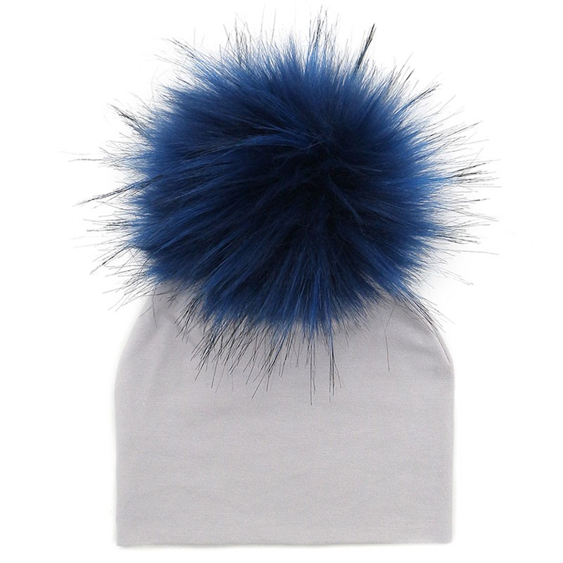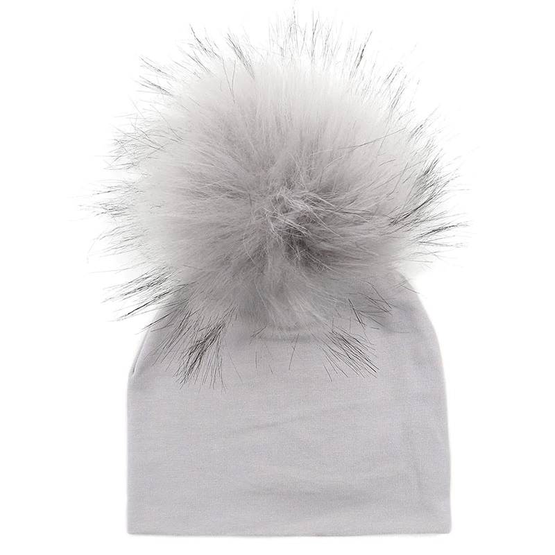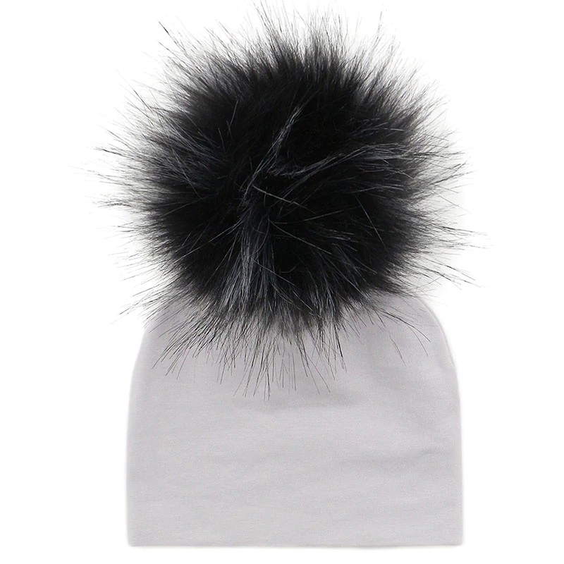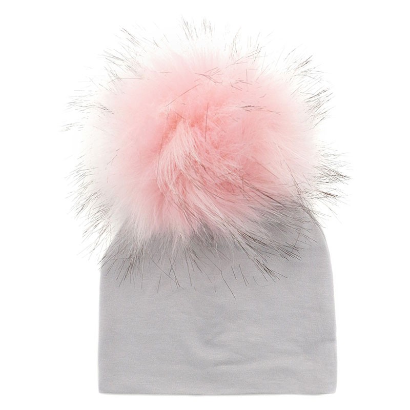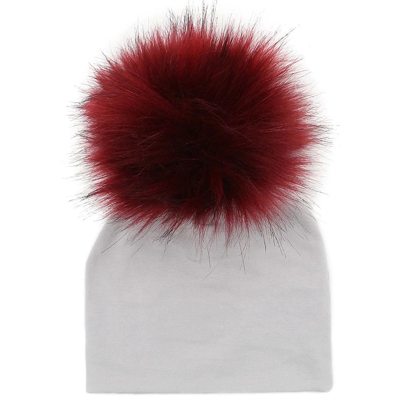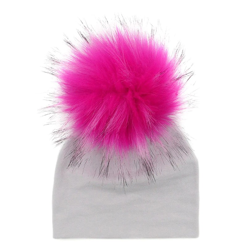 Diese graue Wintermütze mit bunten Bommeln hält Ihr Kind an kalten Tagen warm.