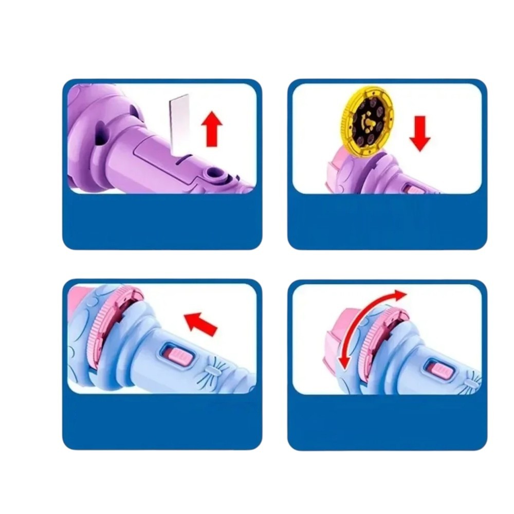 Projektionstaschenlampe für Kinder mit 10 Karten und 80 Mustern, einfache Handhabung, sichere Stromversorgung mit Knopfzellen und idealer Spaß für Kinder ab drei Jahren. Vollständige Beschreibung