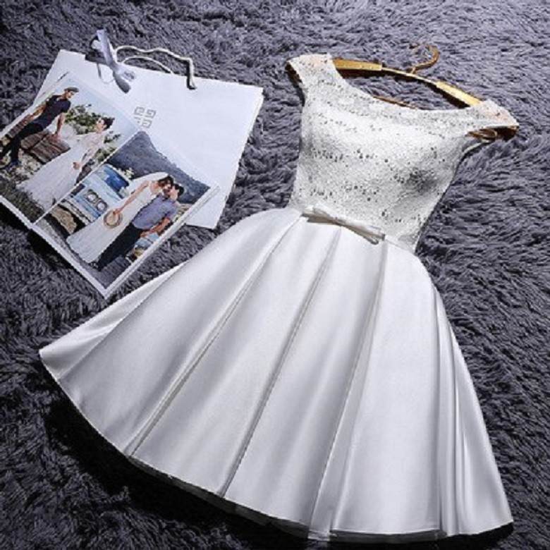 Spitzenoberteil mit überschnittenen Schultern, ausgestellter, glatter Rock.