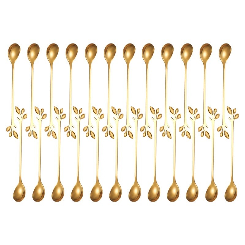 Startseite Startseite Haushalt Küchenbedarf Tischaccessoires Besteck Besteck-Sets Lange Teelöffel aus Edelstahl mit dekorativem Blattgriff Dessertlöffel für Kaffee, Tee, Eis und Obst Elegante Besteckset 24 Stück