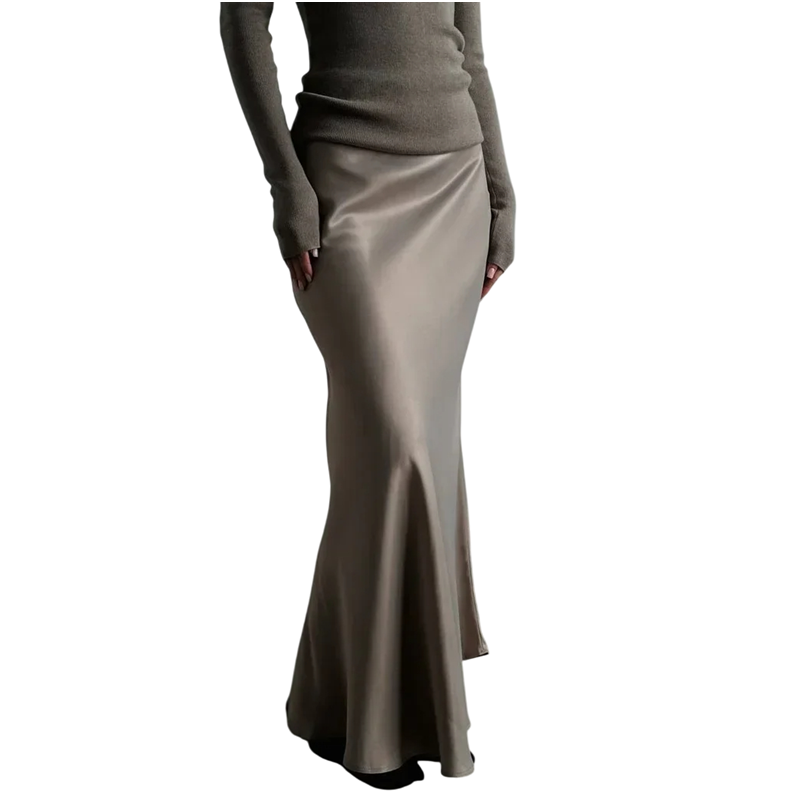 Ein eleganter langer Rock aus glänzendem Satin mit hoher Taille, der Ihre Silhouette betont und jedem Outfit eine zarte und feminine Note verleiht. Vollständige Beschreibung