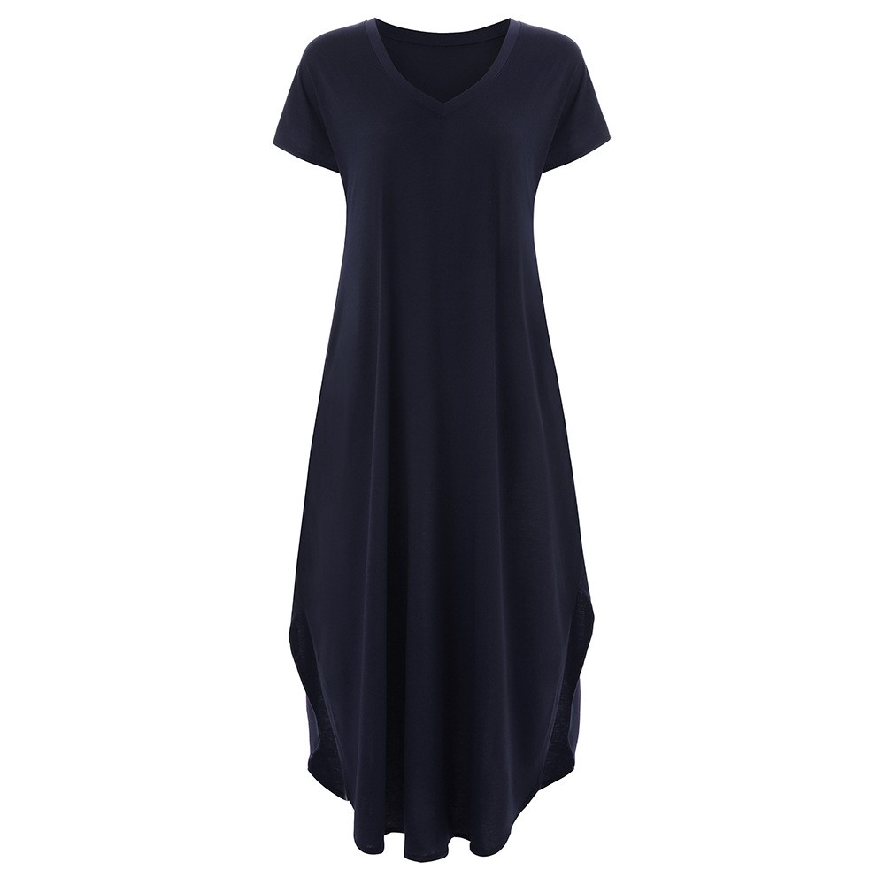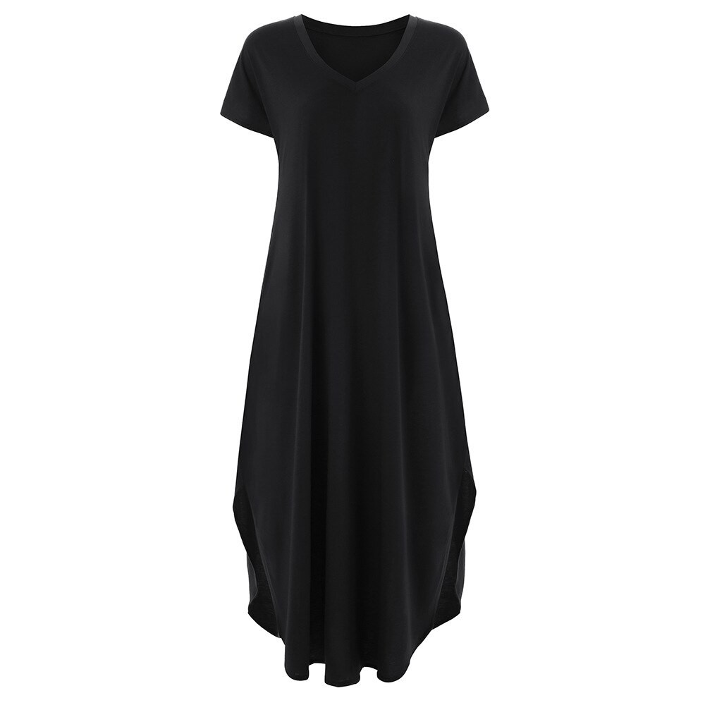 Damenkleid mit kurzen Ärmeln und rundem Ausschnitt.