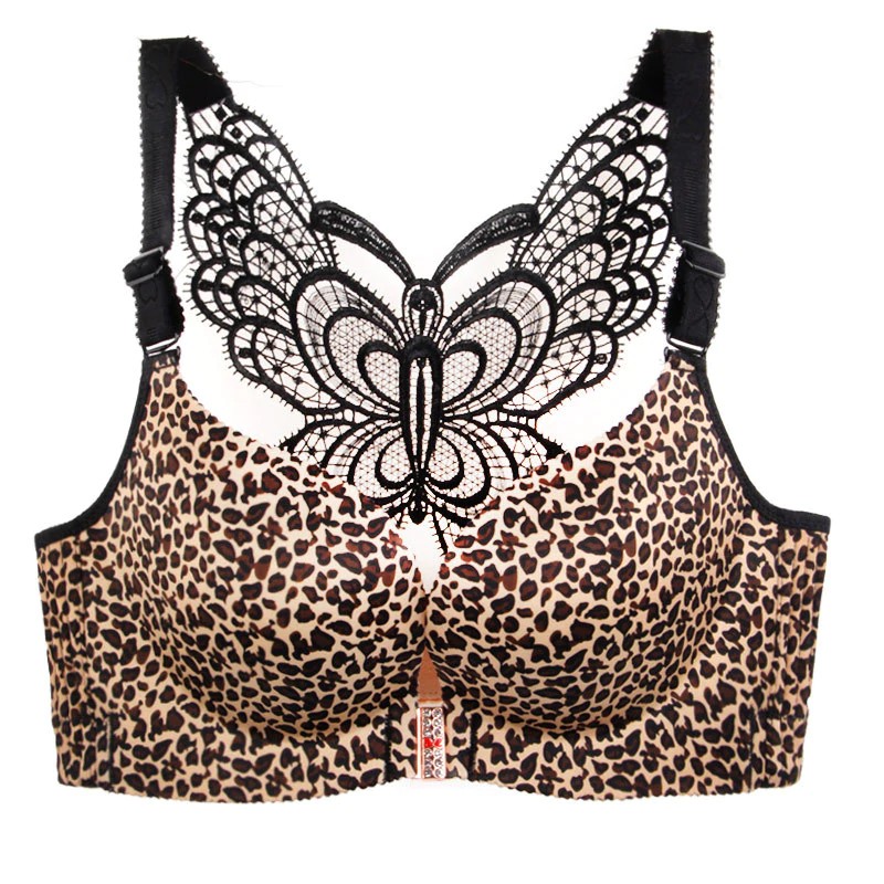 Der BH hat ein Leopardenmuster und eine Spitzenschleife auf der Rückseite.
