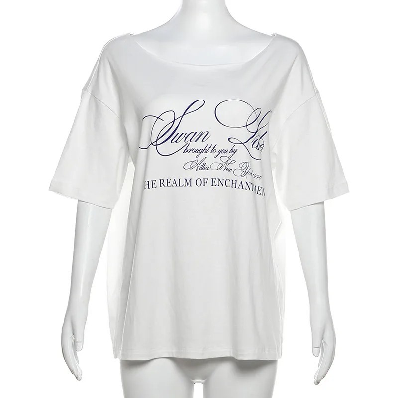 Startseite Startseite Kleidung und Accessoires Damenbekleidung T-Shirts und Tops für Damen Kurzarm T-Shirts und Tops für Damen Lockeres T-Shirt mit Print für die Freizeit Modischer Oversize-Schnitt Schlupf-Ausschnitt Baumwollmaterial Stylisches Streetwear-Outfit für die City