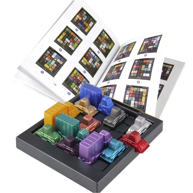 Das Ziel des Spiels ist es, gemäß den Anweisungen im Handbuch die Autos auf der Spieloberfläche zu bewegen, um die logische Aufgabe zu lösen. Kinder üben räumliches Wahrnehmen und logisches Denken auf unterhaltsame Weise. Dank der übersichtlichen Gestaltung ist das Spiel für verschiedene Altersgruppen geeignet und fördert individuelles sowie gemeinschaftliches Spielen.