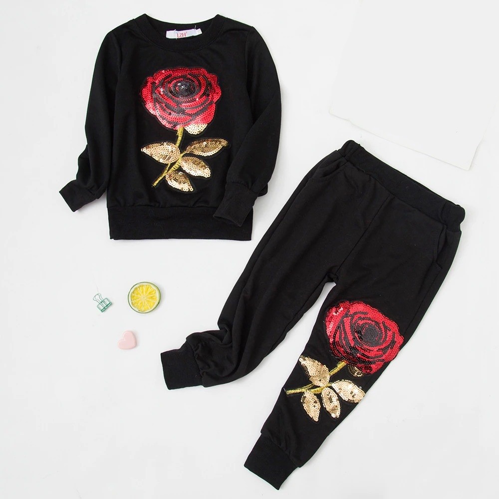 Sweatshirt und Hose für Mädchen mit einer Rose