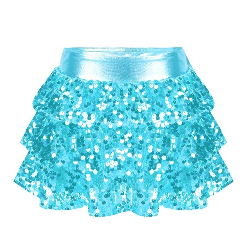 Startseite Startseite Kleidung und Accessoires Kinderkleidung Mädchenkleidung Röcke für Mädchen Mädchenrock Einfarbig mit Raffung und Pailletten Über dem Knie Polyester Festlicher Glitzerrock für Mädchen