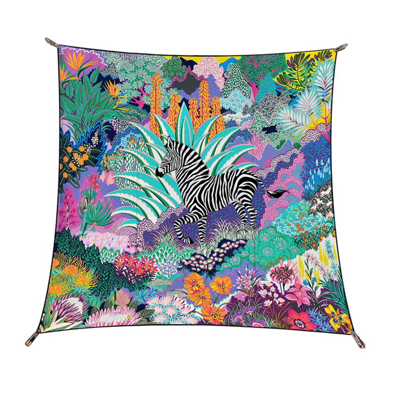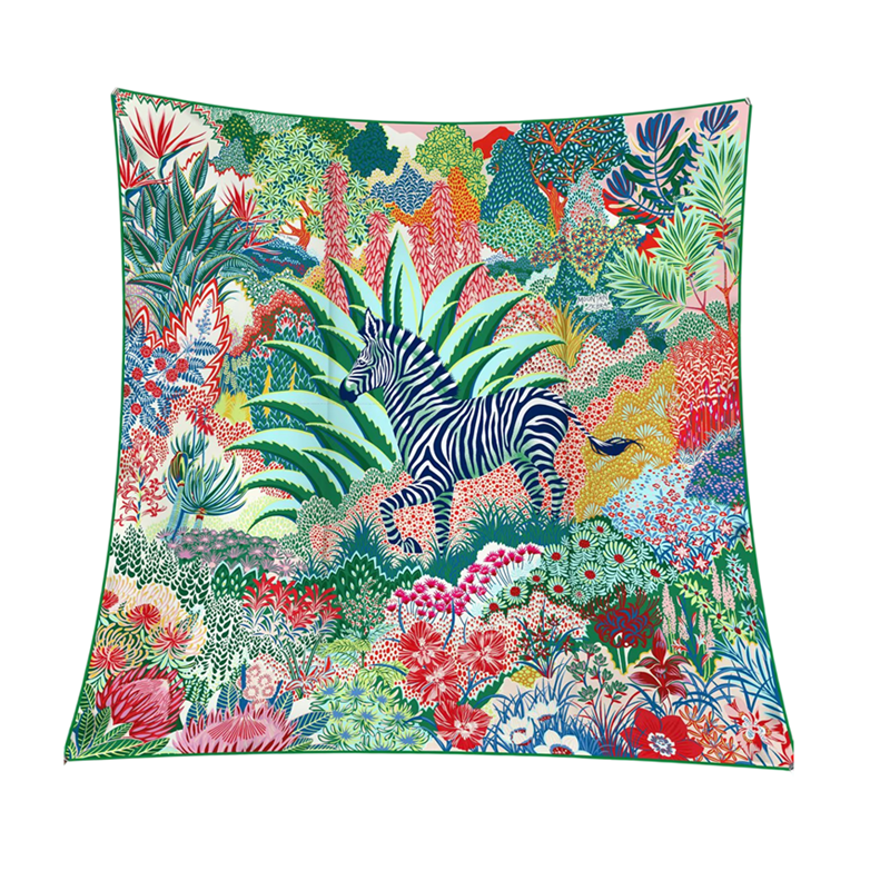 Dieses quadratische Tuch bringt eine künstlerische Atmosphäre inspiriert von der Natur in die Alltagsmode. Das Zebra-Motiv eingebettet in eine malerische Landschaft schafft eine harmonische Kombination aus Eleganz und Originalität. Das Design wirkt zart, aber gleichzeitig auffällig, wodurch es selbst ein einfaches Outfit aufwerten kann. Das Tuch ist als multifunktionales Modeaccessoire konzipiert, das auf verschiedene Arten getragen werden kann. Es eignet sich hervorragend als Tuch für Kopf, Hals und Körper und ermöglicht vielfältige stilvolle Kombinationen.
