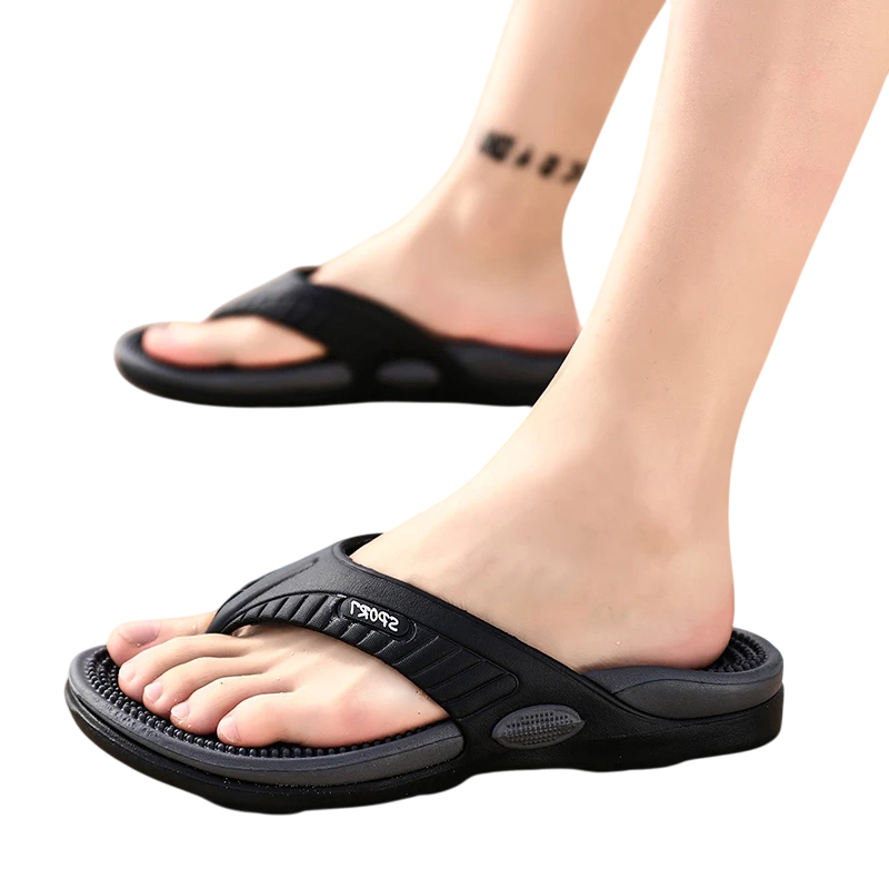 Sie suchen praktische und bequeme Schuhe für Sommertage, die gleichzeitig die Gesundheit Ihrer Füße unterstützen? Massage-Flip-Flops für Herren vereinen den Komfort klassischer Hausschuhe mit der Stimulationsfunktion der Füße durch eine spezielle Massagesohle. Sie eignen sich nicht nur ideal für den Strand oder Pool, sondern auch für den alltäglichen Gebrauch zu Hause. Jeder Schritt in diesen Schuhen stimuliert sanft Druckpunkte an den Füßen , was dazu beitragen kann, Verspannungen zu lösen und die Durchblutung zu verbessern.