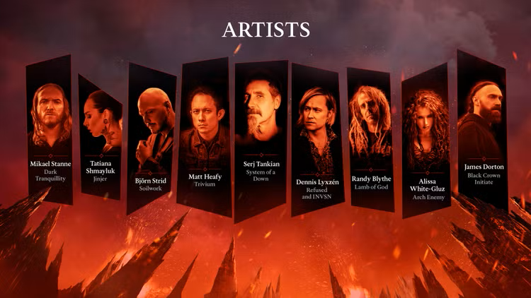 Jeder Song wurde speziell für das Spiel mit Gesang von Metal-Ikonen wie Serj Tankian (System of a Down), Matt Heafy (Trivium), Mikael Stanne (Dark Tranquillity), Randy Blythe (Lamb of God), Alissa White-Gluz (Arch Enemy) und Tatiana Shmailyuk (Jinjer) erstellt.